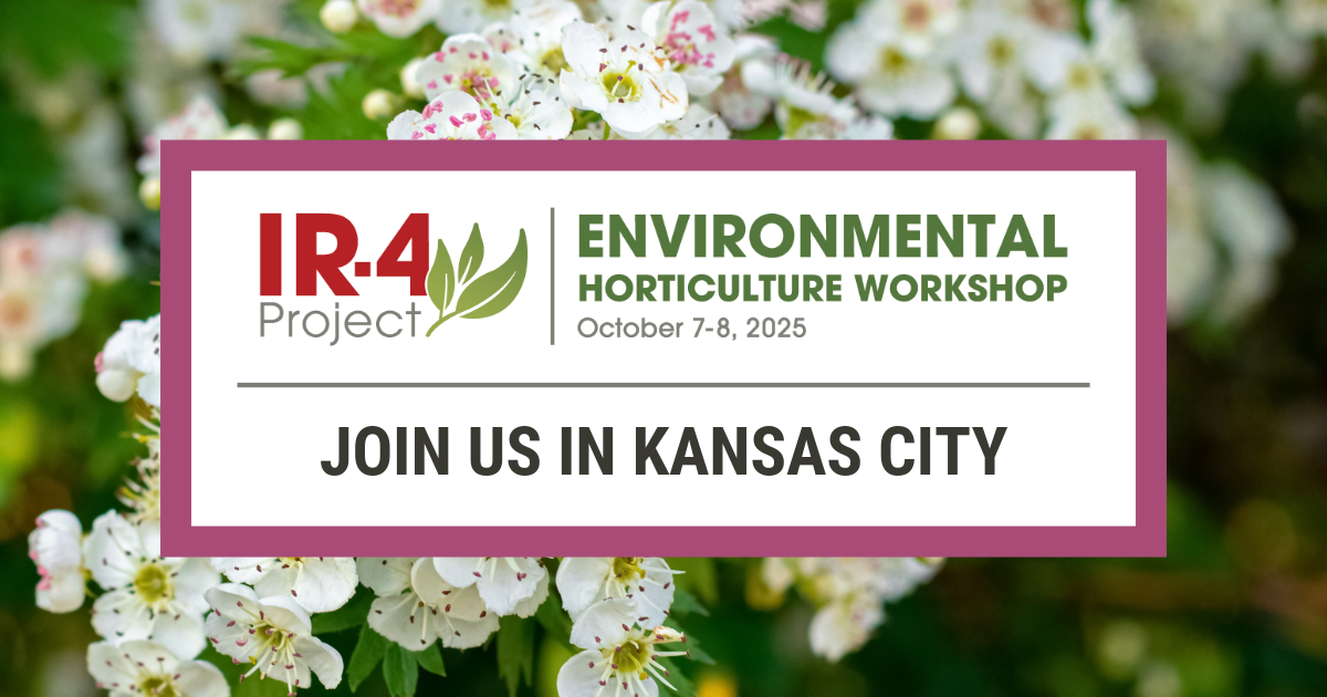 IR-4 will host the next biennial Environmental Horticulture Workshop from October 7-8, 2025, in Kansas City, Missouri. At this event, stakeholders involved in the Environmental Horticulture Program will collaborate to set national and regional research priorities for the next two-year cycle. We will update this page continually as the event approaches. We hope to see you in Kansas City!