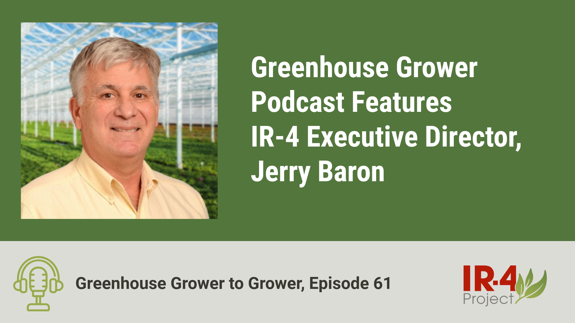 IR-4 Executive Director, Jerry Baron, is featured in episode 61 of “Greenhouse Grower to Grower,” a podcast by Greenhouse Grower. Tune into this conversation, hosted by Editor Brian Sparks, to hear Jerry’s thoughts on the evolution of crop protection products for specialty crops, as well as reflections on his 40-year career with iR-4 and how the organization has grown over time. As Jerry approaches his retirement, his perspective is invaluable. We encourage you to listen and share the episode.