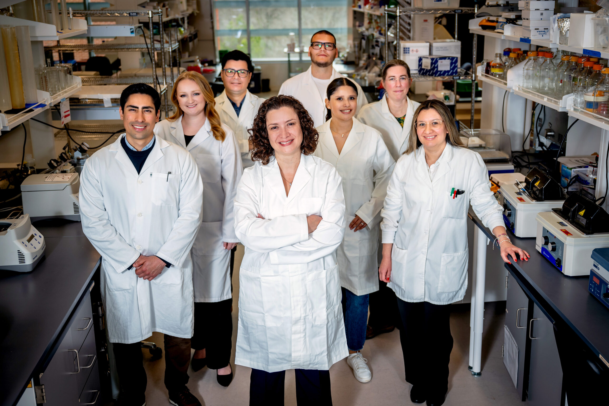 Lina Quesada-Ocampo, center, with members of the Quesada Lab at NC State University.